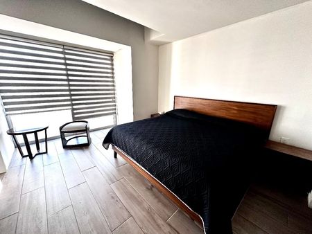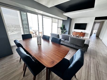 La amplia sala y comedor también se benefician de esta vista espectacular, creando un ambiente elegante y acogedor. El departamento incluye dos cajones de estacionamiento y una bodega para tu conveniencia. El condominio ofrece un estilo de vida único con dos áreas de amenities, que incluyen una alberca volada, restaurante, jacuzzi, área de fogata, gimnasio, business center, salón de usos múltiples y más. Experimenta el confort con aire acondicionado y cortinas incluidas. ¡Tu hogar ideal completamente amueblado en la torre Lobby 33 te espera! Contáctanos para conocer más y agendar tu visita.